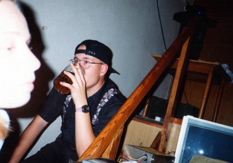 Kousek ksichtíku veverky Janičky a Hollowmánek se oddával konzumaci pivíčka.