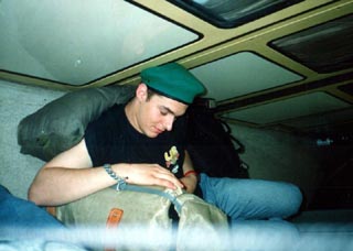 Protože sme táhli samý krámy, tak jsme museli trávit celou cestu v uličce vlaku.