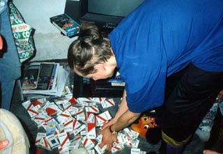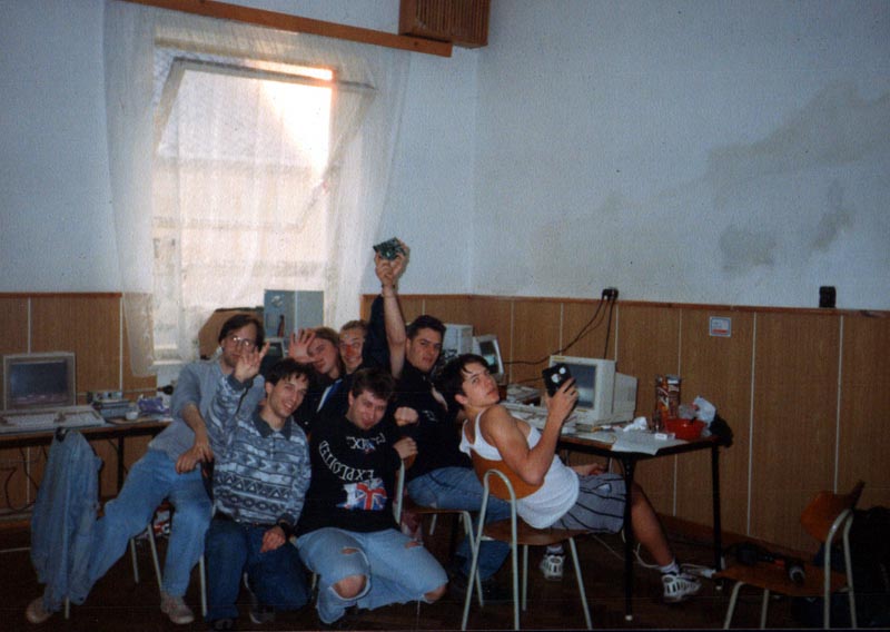 Všichni gamesníci. Zleva Špiritus, Dizzy, Wincle, Opice v pozadí, pod ním je