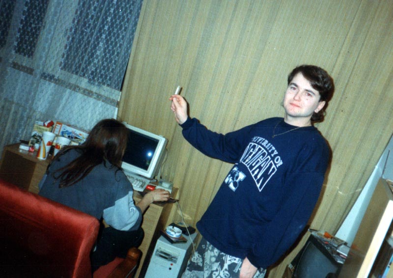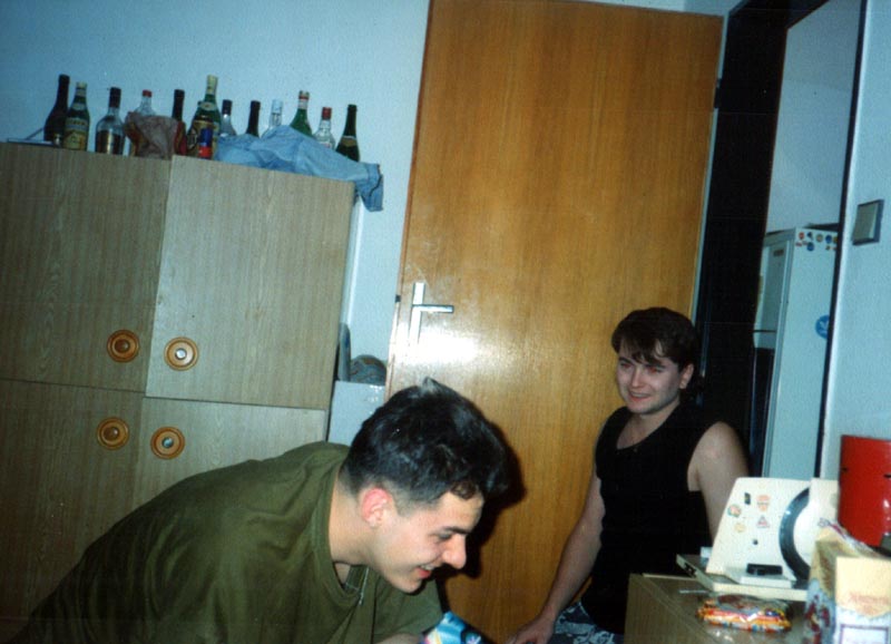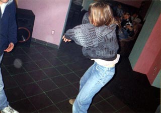 Tady to jsou fotky z další párty, která se konala někdy v únoru 99. Lazy se předvádí před Janičkou.