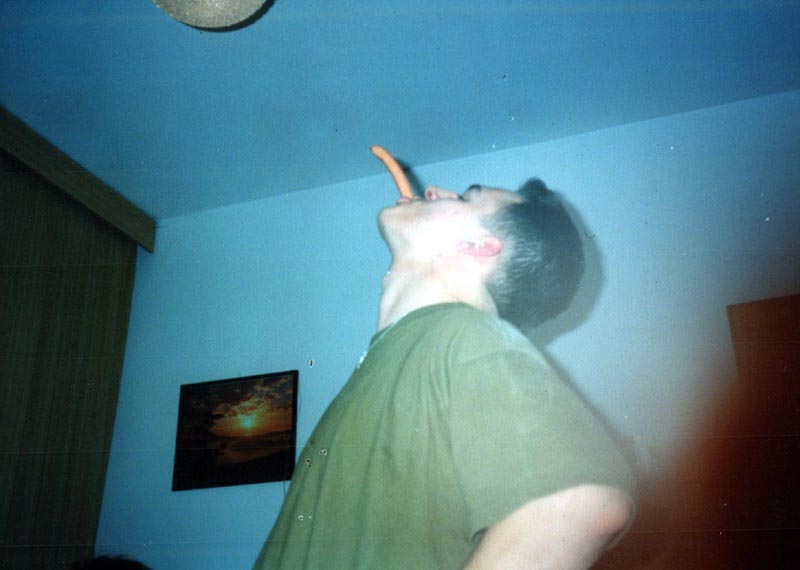 Holy pojídá párečky. |