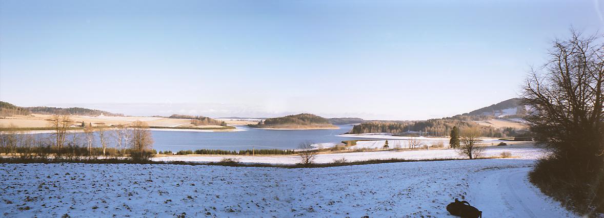Pořád samé vánoce, na nic není čas, a ještě do školky na besídku musím jít. Pandora bude recitovat "Já jsem malý Chocholáček, přišel jsem k vám pro koláček" a pak budou ovace. Nakonec občerstvení. Raději se občerstvím předem, mám na to tady ve spíži takovou láhev. Udělali fotky, ale za moc nestojí. Možná abych přece jen uvažoval o digitálu. Na fotografii je Slezská Harta a úplně vpravo zpoza stromu vyčuhuje sopka Velký Roudný.